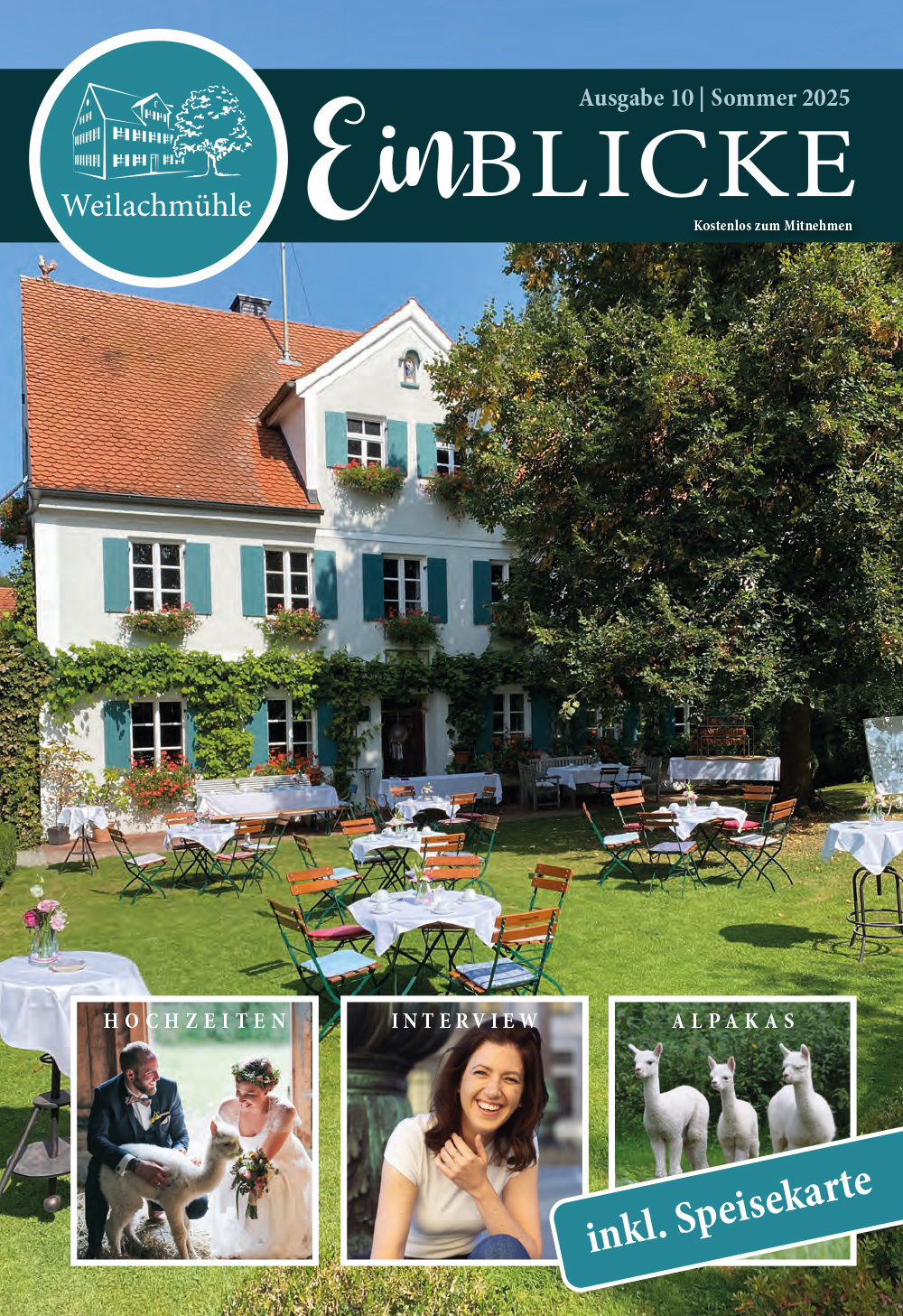 Mit unserem Magazin EINBLICKE wollen wir Euch ein bisschen über die einzigartige Weilachmühle und vor allem über unser vielseitiges Kunst- und Kulturprogramm berichten.