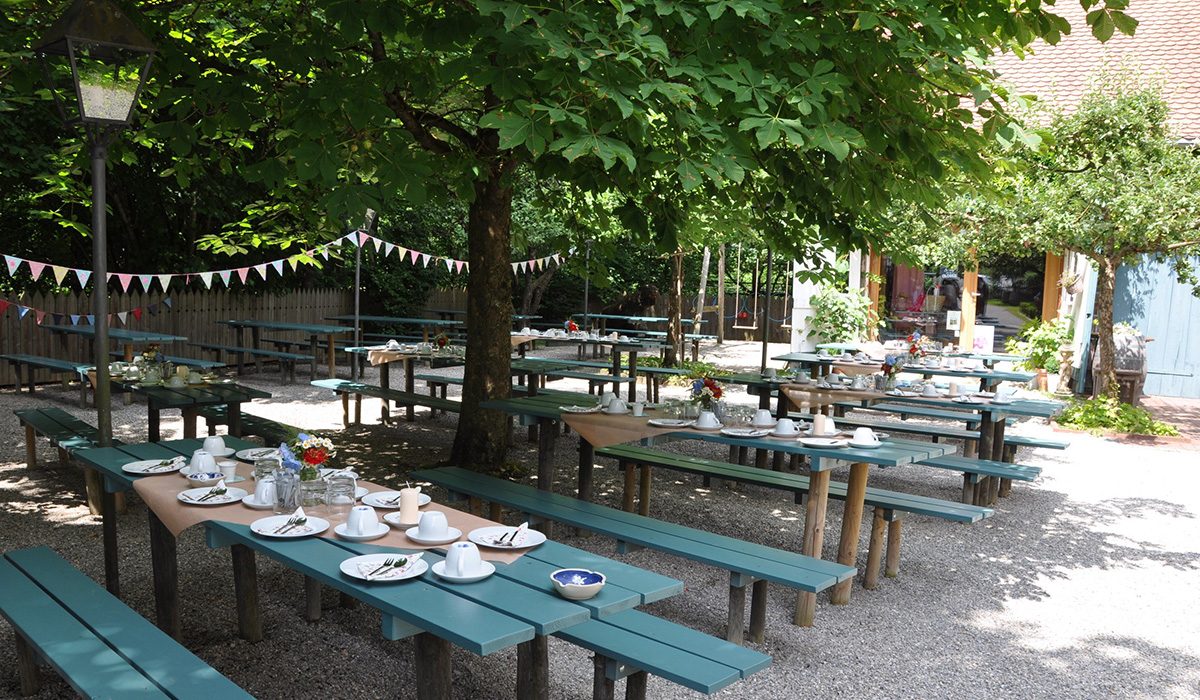 - Unser weitläufiger Außenbereich: Hier stehen Ihnen unser malerischer Biergarten, ein Kinderspielplatz und ein großzügiger Landgarten für ihre Hochzeitsfeier zur Verfügung