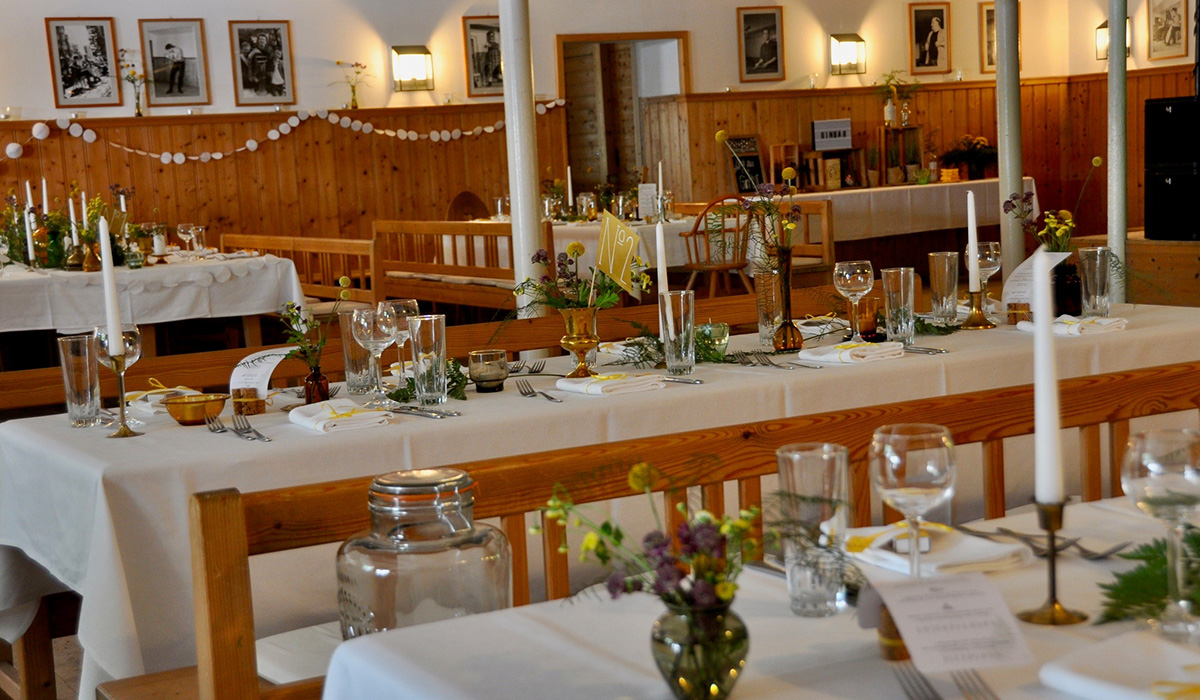 Zünftig Hochzeit feiern in einem besonderen Ambiente? Passend zum Mobiliar im Landhaus-Stil legen wir Wert auf romantische Dekorationen und wunderschöne Blumenarrangements. Dabei gehen wir selbstverständlich auf Ihre individuellen Wünsche ein.