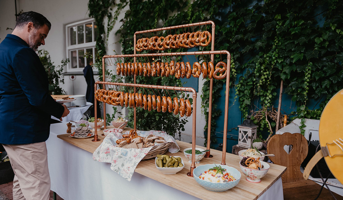Damit Sie sich während der Hochzeitsfeier entspannt zurücklehnen können, steht Ihnen Restaurantchef Jonas Tesch und sein Team zur Seite. Ihre Gäste verwöhnen wir mit unseren hausgemachten Speisen und eigens für den Anlass zubereiteten Köstlichkeiten aus der Küche von Chef Dominik Baiersdorfer. Dabei verarbeiten wir mit viel Liebe ausschließlich frische und qualitativ hochwertige Produkte.